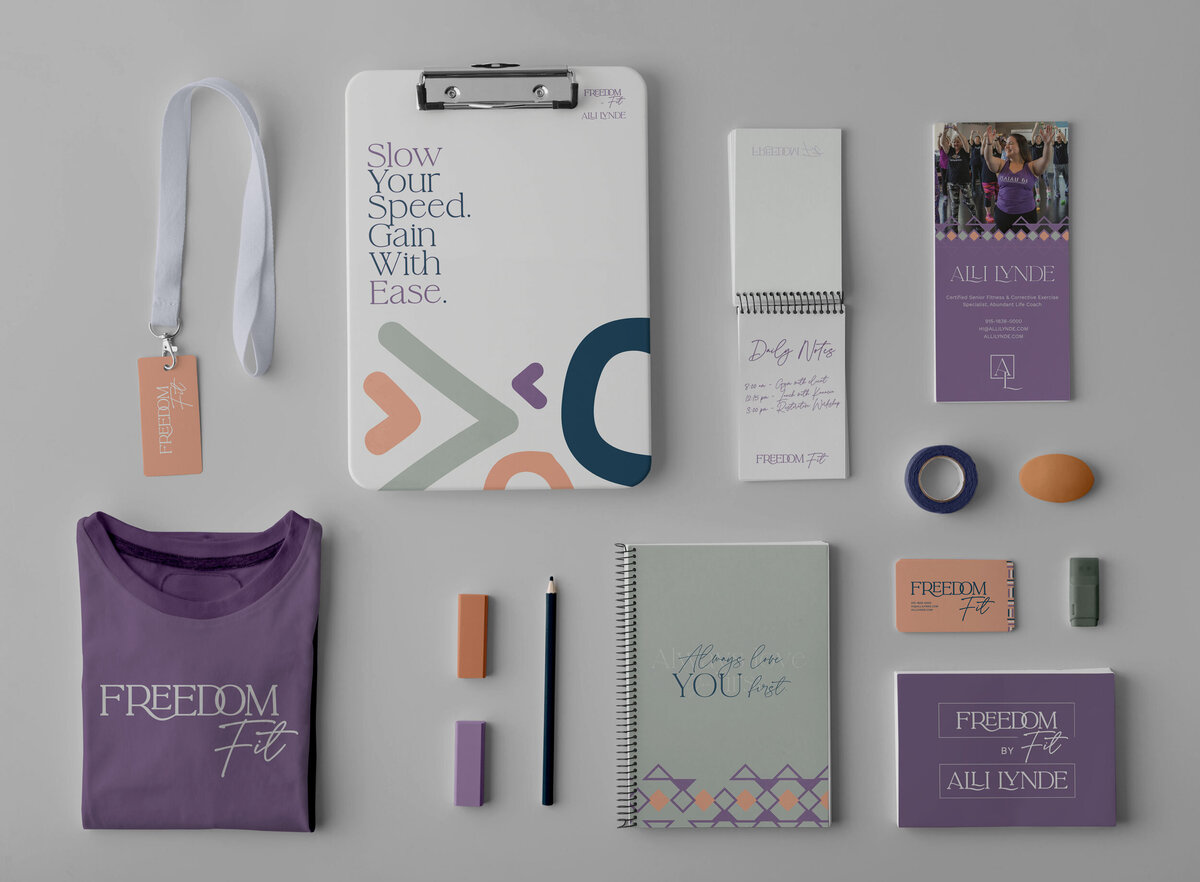 For Alli Lynde and Freedom Fit, I designed atho ughtful brand identity that reflects both her professional expertise and the compassionate approach she takes toward her clients. As a fitness and physical therapist specializing in enhancing the lives of seniors and individuals with disabilities, Alli needed a logo and visual identity that not only captured the essence of her roots and services but also resonated deeply with her target audience. The goal was to create a brand that felt welcoming, empowering, and supportive—an extension of Alli’s mission to promote mobility, strength, and well-being for those who need it most.